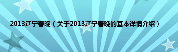 本文关于2013辽宁春晚的基本详情介绍就讲解完毕,希望对大家有所帮助。
