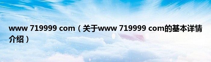 本文关于www 719999 com的基本详情介绍就讲解完毕,希望对大家有所帮助。