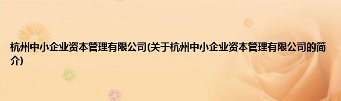本文关于杭州中小企业资本管理有限公司的简介就讲解完毕,希望对大家有所帮助。