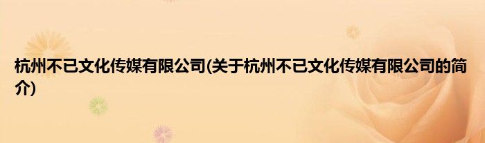 本文关于杭州不已文化传媒有限公司的简介就讲解完毕,希望对大家有所帮助。