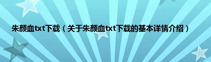 本文关于朱颜血txt下载的基本详情介绍就讲解完毕,希望对大家有所帮助。