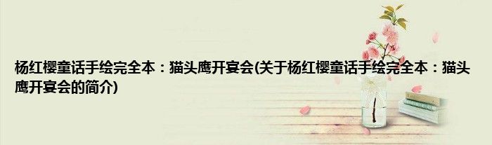 大家好,杨红樱童话手绘完全本:猫头鹰开宴会,关于杨红樱童话手绘完全本:猫头鹰开宴会的简介很多人还不知道,现在让我们一起来看看吧!