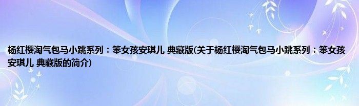1、 《杨红樱淘气包马小跳系列:笨女孩安琪儿(典藏版)》是2013年1月1日浙江少年儿童出版社出版的图书,作者是杨红樱。