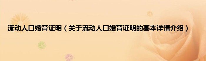 本文关于流动人口婚育证明的基本详情介绍就讲解完毕,希望对大家有所帮助。