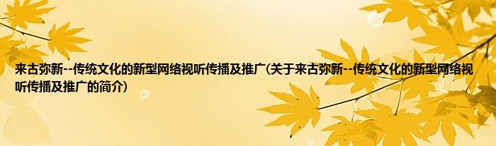 本文关于来古弥新--传统文化的新型网络视听传播及推广的简介就讲解完毕,希望对大家有所帮助。