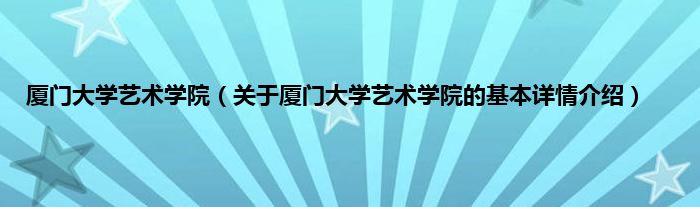 本文关于厦门大学艺术学院的基本详情介绍就讲解完毕,希望对大家有所帮助。