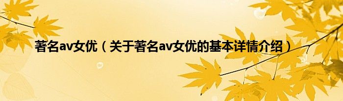 本文关于著名av女优的基本详情介绍就讲解完毕,希望对大家有所帮助。