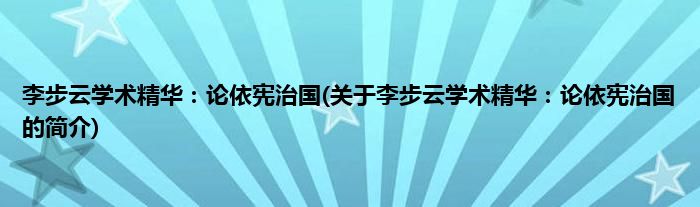 本文关于李步云学术精华:论依宪治国的简介就讲解完毕,希望对大家有所帮助。