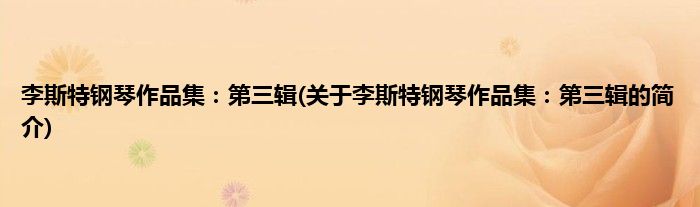 本文关于李斯特钢琴作品集:第三辑的简介就讲解完毕,希望对大家有所帮助。