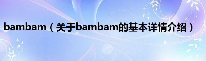 本文关于bambam的基本详情介绍就讲解完毕,希望对大家有所帮助。