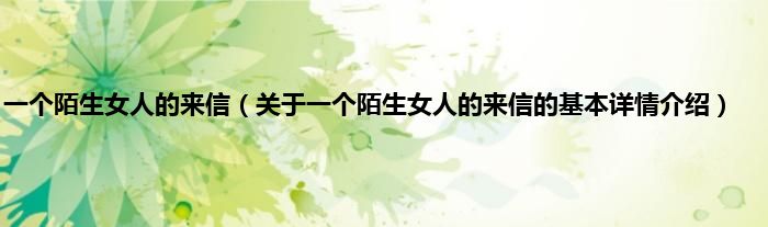 本文关于一个陌生女人的来信的基本详情介绍就讲解完毕,希望对大家有所帮助。