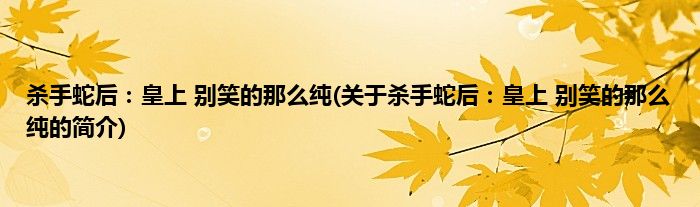 最佳答案大家好,杀手蛇后:皇上,别笑的那么纯,关于杀手蛇后:皇上,别笑的那么纯的简介很多人还不知道,现在让我们一起来看看吧! 1、 杀手蛇后:皇上。2、别笑的那么纯。3、一个网络连载的言情小说。本文关于杀手蛇后:皇上,别笑的那么纯的简介就讲解完毕,希望对大家有所帮助。