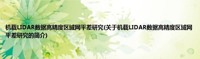 大家好,机载LIDAR数据高精度区域网平差研究,关于机载LIDAR数据高精度区域网平差研究的简介很多人还不知道,现在让我们一起来看看吧!