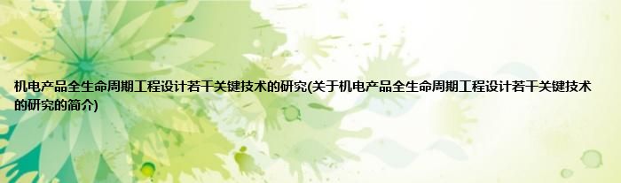 大家好,机电产品全生命周期工程设计若干关键技术的研究,关于机电产品全生命周期工程设计若干关键技术的研究的简介很多人还不知道,现在让我们一起来看看吧!