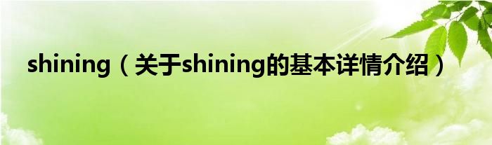 本文关于shining的基本详情介绍就讲解完毕,希望对大家有所帮助。