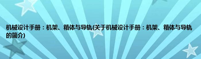 大家好,机械设计手册:机架、箱体与导轨,关于机械设计手册:机架、箱体与导轨的简介很多人还不知道,现在让我们一起来看看吧!