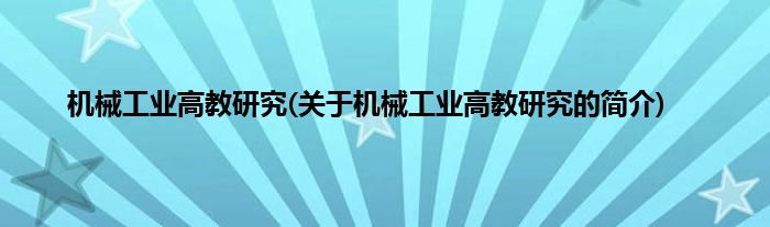 本文关于机械工业高教研究的简介就讲解完毕,希望对大家有所帮助。