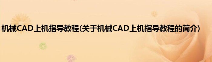 机械CAD上机指导教程(关于机械CAD上机指导教程的简介)