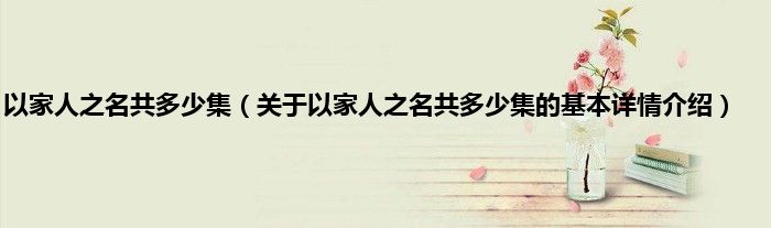 本文关于以家人之名共多少集的基本详情介绍就讲解完毕,希望对大家有所帮助。