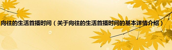 本文关于向往的生活首播时间的基本详情介绍就讲解完毕,希望对大家有所帮助。