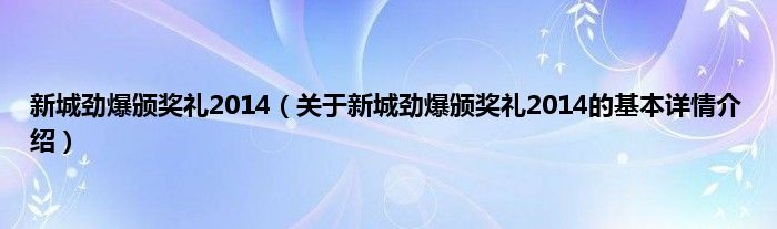 本文关于新城劲爆颁奖礼2014的基本详情介绍就讲解完毕,希望对大家有所帮助。