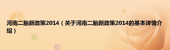 本文关于河南二胎新政策2014的基本详情介绍就讲解完毕,希望对大家有所帮助。