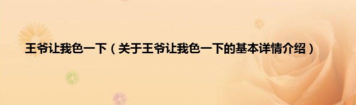 本文关于王爷让我色一下的基本详情介绍就讲解完毕,希望对大家有所帮助。