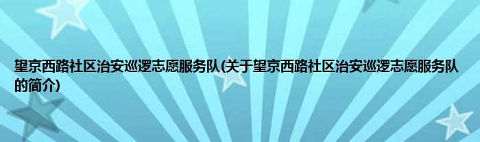 本文关于望京西路社区治安巡逻志愿服务队的简介就讲解完毕,希望对大家有所帮助。