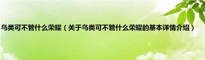 本文关于鸟类可不管什么荣耀的基本详情介绍就讲解完毕,希望对大家有所帮助。