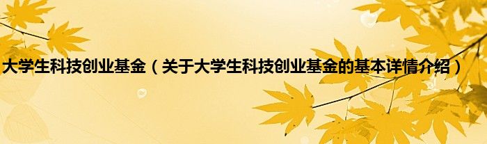 本文关于大学生科技创业基金的基本详情介绍就讲解完毕,希望对大家有所帮助。