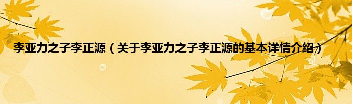 本文关于李亚力之子李正源的基本详情介绍就讲解完毕,希望对大家有所帮助。