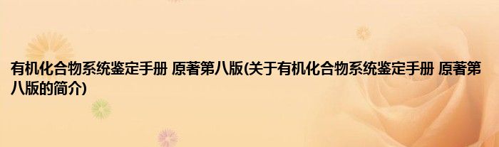 大家好,有机化合物系统鉴定手册 原著第八版,关于有机化合物系统鉴定手册 原著第八版的简介很多人还不知道,现在让我们一起来看看吧!