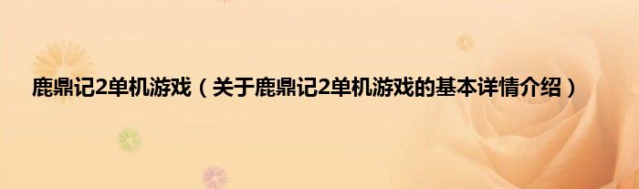 本文关于鹿鼎记2单机游戏的基本详情介绍就讲解完毕,希望对大家有所帮助。