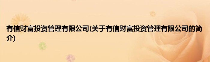 大家好,有信财富投资管理有限公司,关于有信财富投资管理有限公司的简介很多人还不知道,现在让我们一起来看看吧!