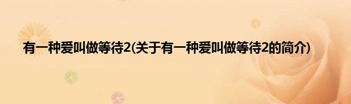 本文关于有一种爱叫做等待2的简介就讲解完毕,希望对大家有所帮助。