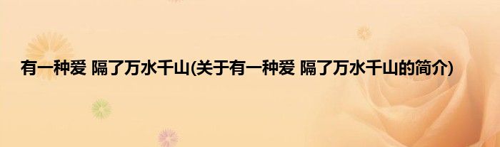 本文关于有一种爱,隔了万水千山的简介就讲解完毕,希望对大家有所帮助。