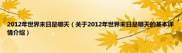 本文关于2012年世界末日是哪天的基本详情介绍就讲解完毕,希望对大家有所帮助。
