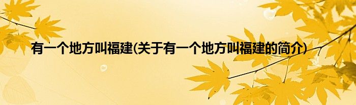 本文关于有一个地方叫福建的简介就讲解完毕,希望对大家有所帮助。