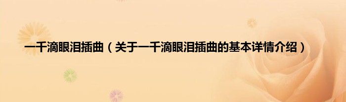 本文关于一千滴眼泪插曲的基本详情介绍就讲解完毕,希望对大家有所帮助。