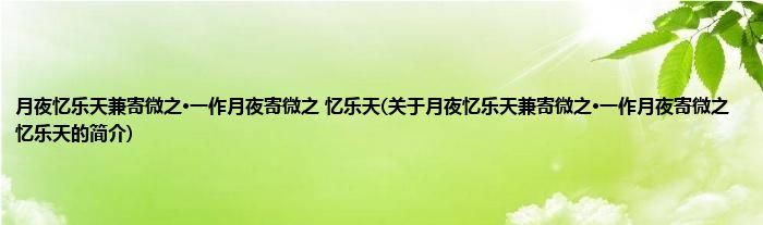 本文关于月夜忆乐天兼寄微之·一作月夜寄微之,忆乐天的简介就讲解完毕,希望对大家有所帮助。