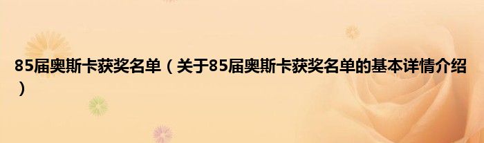 本文关于85届奥斯卡获奖名单的基本详情介绍就讲解完毕,希望对大家有所帮助。