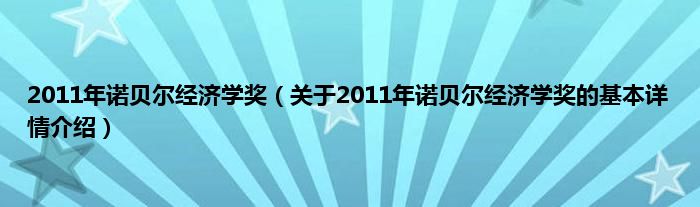 本文关于2011年诺贝尔经济学奖的基本详情介绍就讲解完毕,希望对大家有所帮助。