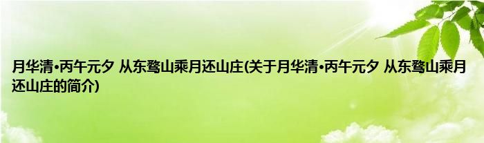 本文关于月华清·丙午元夕,从东骛山乘月还山庄的简介就讲解完毕,希望对大家有所帮助。