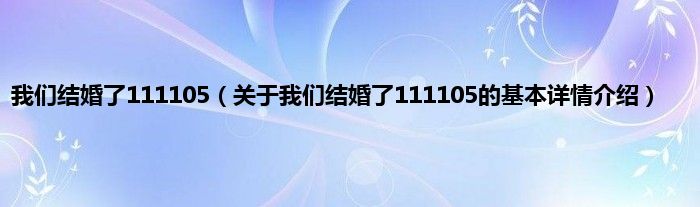 本文关于我们结婚了111105的基本详情介绍就讲解完毕,希望对大家有所帮助。