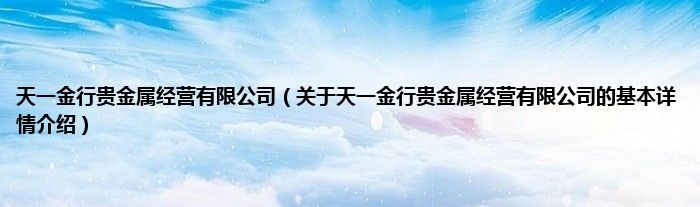 本文关于天一金行贵金属经营有限公司的基本详情介绍就讲解完毕,希望对大家有所帮助。