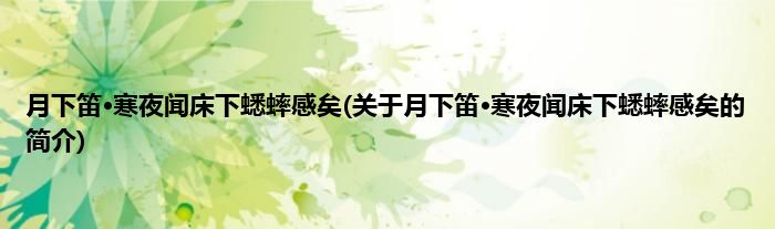 本文关于月下笛·寒夜闻床下蟋蟀感矣的简介就讲解完毕,希望对大家有所帮助。
