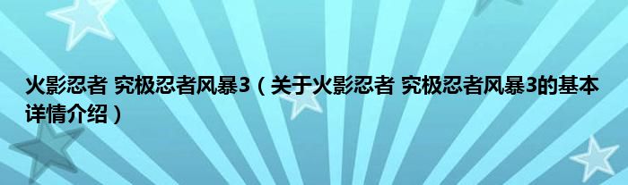 火影忍者 究极忍者风暴3(关于火影忍者 究极忍者风暴3的基本详情介绍)
