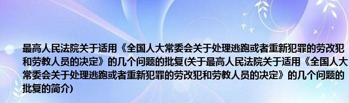 1、 最高人民法院关于适用《全国人大常委会关于处理逃跑或者重新犯罪的劳改犯和劳教人员的决定》的几个问题的批复在1993.07.24由最高人民法院颁布。