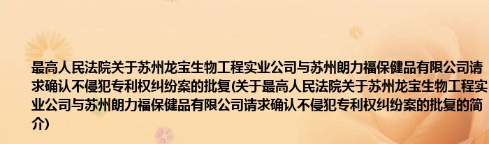 本文关于最高人民法院关于苏州龙宝生物工程实业公司与苏州朗力福保健品有限公司请求确认不侵犯专利权纠纷案的批复的简介就讲解完毕,希望对大家有所帮助。