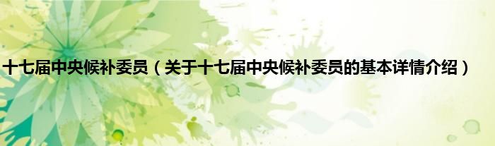 本文关于十七届中央候补委员的基本详情介绍就讲解完毕,希望对大家有所帮助。